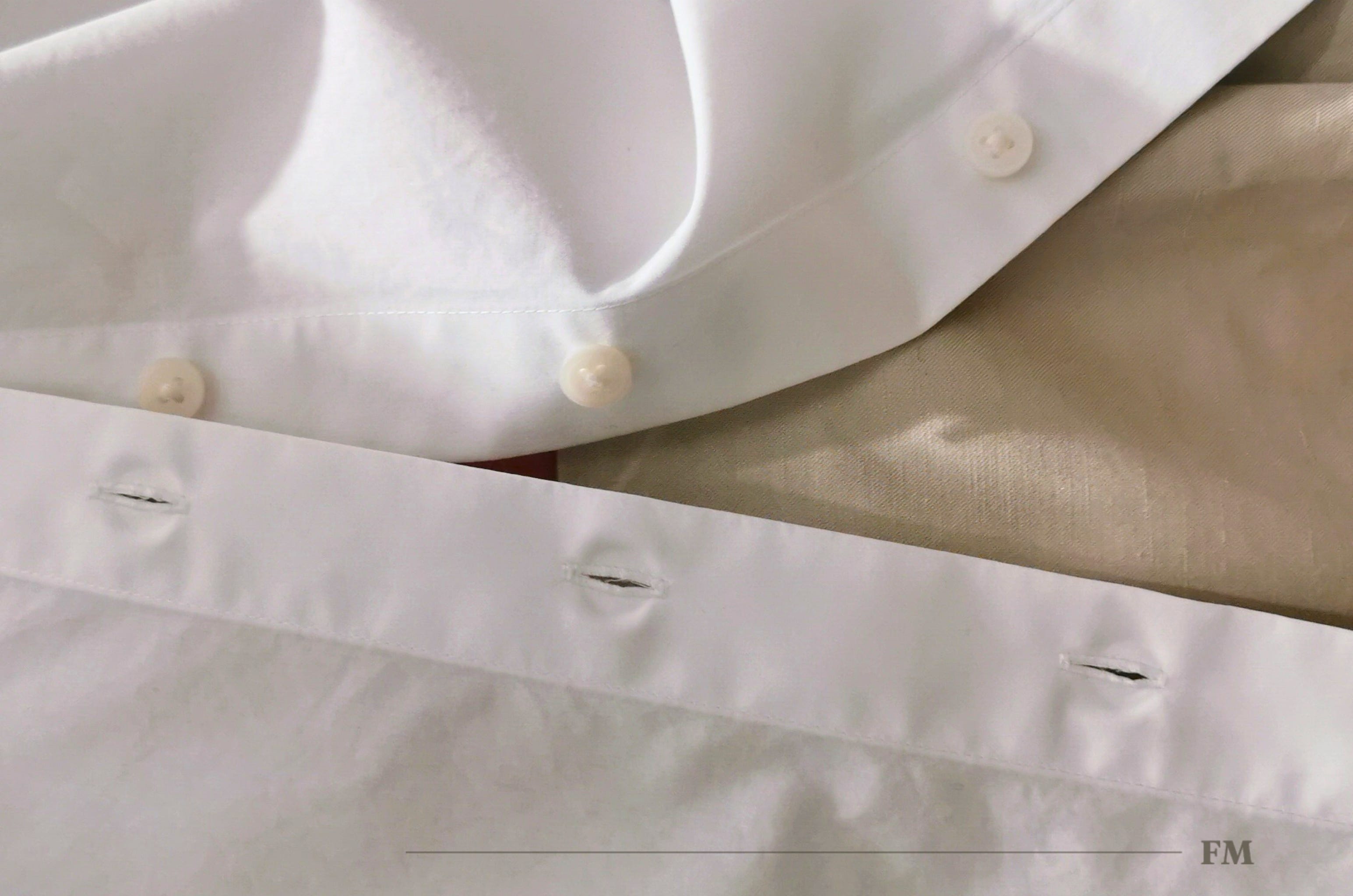 The lights are hot and bright. I'm doing the buttons while trying not to disturb the crisp, structured fabric. I'm shopping for a great white shirt. The ones I have don’t suit what I'm dressing for. I look up, the seam hits the shoulder the way I want it to, but now I don't know what to do. How do I wear it?